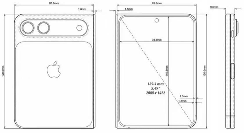 Οι διαστάσεις του foldable iPhone είναι στα 120.6 x 83.8 x 9.6mm όσο είναι κλειστό και κατά το άνοιγμα, φτάνει τα 120.6 x 167.6 x 4.8mm. Αξίζει να σημειωθεί πως η αναλογία και οι διαστάσεις της εξωτερικής οθόνης, είναι λίγο ασυνήθιστες, συγκριτικά με τα υπόλοιπα foldable smartphone της αγοράς.