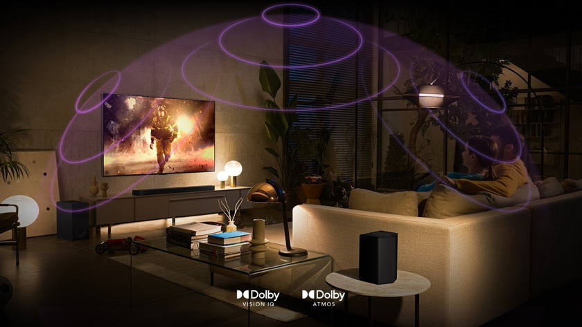 Ακόμα, ο επεξεργαστής α9 Gen 5 AI επιτυγχάνει μίξη ήχου 2 καναλιών σε εικονικό ήχο 7.1.2 καναλιών και κάνει τις σκηνές ακόμα πιο ζωντανές. Ο επεξεργαστής βελτιστοποιεί αυτόματα την ποιότητα ήχου και εικόνας για μια απόλυτα καθηλωτική εμπειρία, μετατρέποντας το θεατή σε κεντρικό χαρακτήρα της ταινίας και της δράσης. Μια αληθινή κινηματογραφική εμπειρία, με καθηλωτικό ήχο surround, ξεδιπλώνεται με τη βοήθεια του Dolby Vision IQ™[3] με το Dolby Atmos®3 ενώ μέσω του επεξεργαστή α9 Gen 5 AI της LG, το Dolby Vision IQ™3 προσθέτει εξαιρετικό βάθος και αναδεικνύει λεπτές υφές.
