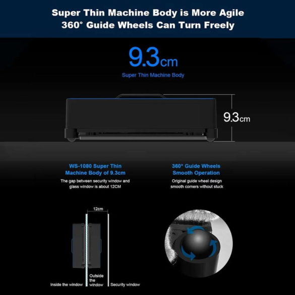 Είναι ένα έξυπνο ρομπότ καθαρισμού παραθύρων με αισθητήρα επιτάχυνσης έξι αξόνων, μοτέρ χωρίς ψήκτρες, και με δίπλωμα ευρεσιτεχνίας, που θα σας απαλλάξει από τον χειροκίνητο καθαρισμό των τζαμιών στα παράθυρα.
