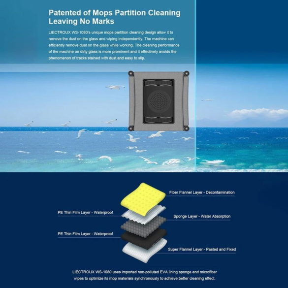LIECTROUX WS-1080 Robot Window Vacuum Cleaner
