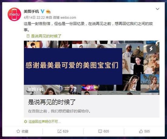Η Meitu πρόσθεσε ότι αυτό δεν είναι ουσιαστικά ένα πραγματικό αποχαιρετιστήριο μήνυμα, αλλά ένας αποχαιρετισμός σε μια εταιρεία που θα μεταμορφωθεί σε κάτι καλύτερο και πιο δυνατό.