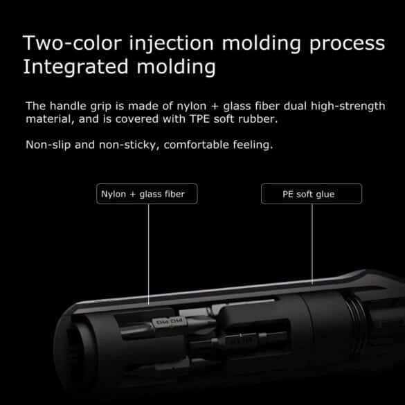Η λαβή του κατσαβιδιού είναι κατασκευασμένη από νάιλον + υαλοβάμβακα και καλύπτεται με μαλακό TPE, αντιολισθητικό και αντικολλητικό καουτσούκ.