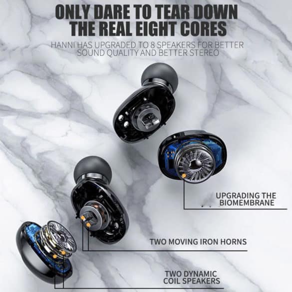Premium Stereo Sound Quality.The product offers a stereo and powerful deep bass with upgrade core configuration.Intelligent noise reduction technology reduces ambient noise and provides clear voice,which allows you to enjoy immersive sound even in the noisy environment.