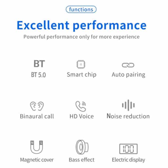 Μπορείτε επίσης να βλέπετε καθαρά την ισχύ της μπαταρίας και την κατάσταση φόρτισης με την ψηφιακή LED οθόνη που υπάρχει στην θήκη τους. Αυτά τα ακουστικά σας προσφέρουν απολαυστικό ήχο, αλλά ταυτόχρονα είναι άνετα στα αυτιά σας και είναι ανθεκτικά στην φθορά, ενώ επίσης είναι κατασκευασμένα από υλικό που είναι φιλικό προς το δέρμα.