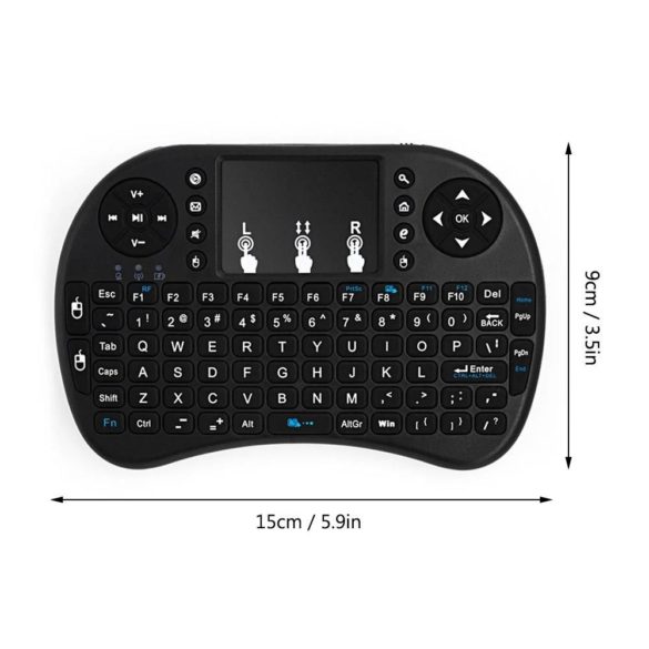 Πρόκειται για ασύρματο μίνι QWERTY πληκτρολόγιο με ασύρματη σύνδεση στα 2.4GHz, με σύνθετο TouchPad, και με δέκτη θύρας USB. Φυσικά είναι Plug and play, ώστε η χρήση του να είναι απλή και ομαλή. Αυτό το μίνι πληκτρολόγιο σας εξασφαλίζει εύκολη πληκτρολόγηση, και μπορείτε να ελέγχετε τις συσκευές σας στον καναπέ σας.