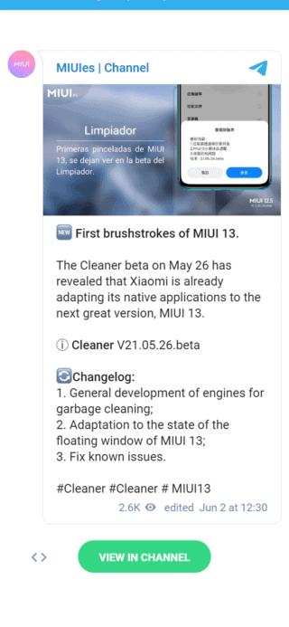 Στις 26 Μαΐου όμως, έγινε διαθέσιμη η νέα έκδοση (21.05.26.beta) της εφαρμογής MIUI Cleaner, και στο changelog που αναρτήθηκε, μας αποκάλυψε ότι η Xiaomi άρχισε να προσαρμόζει τις εφαρμογές του συστήματος του MIUI στην επόμενη γενιά του MIUI 13.