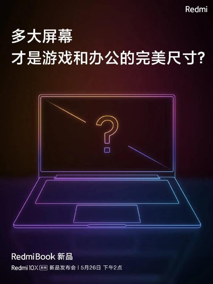 Το teaser (αφίσα) υπονοεί ότι το επερχόμενο RedmiBook το οποίο πρόκειται να κυκλοφορήσει την επόμενη εβδομάδα, θα διαθέτει μεγαλύτερη οθόνη από ότι συνήθως. Αν και το μέγεθος της οθόνης δεν είναι ακόμη γνωστό, αυτό θα μπορούσε να είναι ένα πάνελ των 16 ή 17 ιντσών.