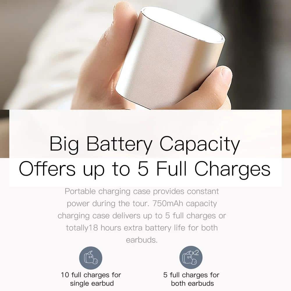 Διαθέτουν χωρητικότητα μπαταρίας στα 750mAh στην θήκη φόρτισης, ώστε να σας παρέχουν σταθερή ισχύ κατά τη διάρκεια των ταξιδιών, των αθλητικών δραστηριοτήτων ή της οδήγησης.