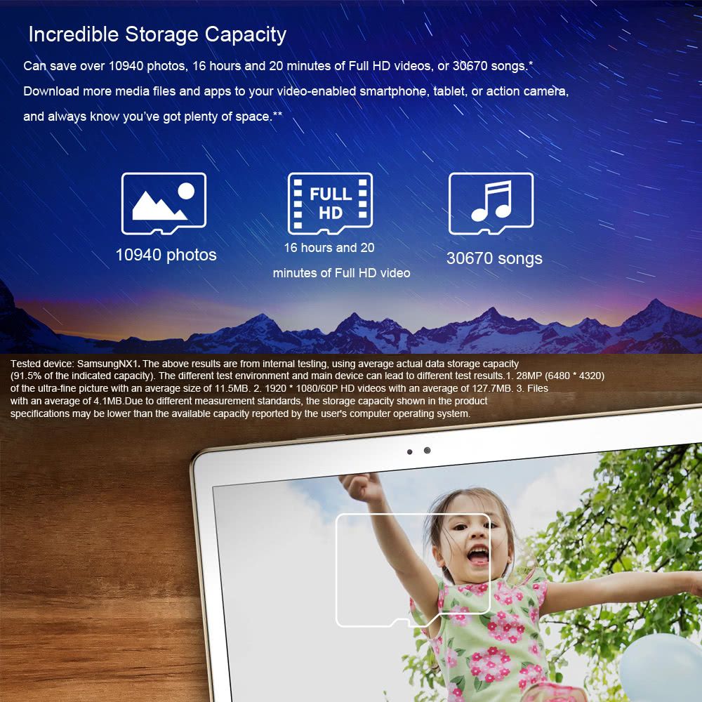 Up to 100MB/s read speed, up to 90MB/s write speed (compatible with Class10 and U3).