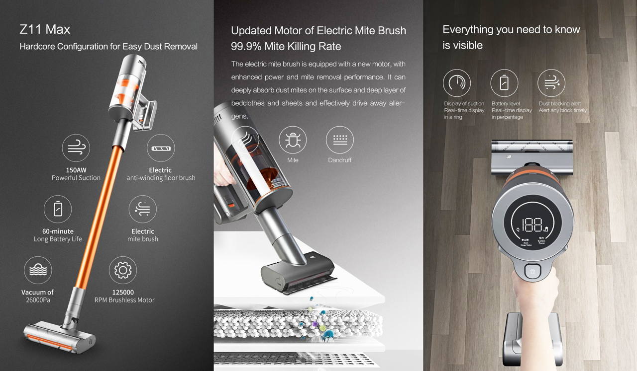 Η Shunzao Z11 Max είναι μια ηλεκτρική σκούπα με ισχυρή ισχύ αναρρόφησης στα 150AW που μπορεί να εξασφαλίσει την απόλυτη καθαριότητα. Είναι εξοπλισμένη με μοτέρ που έχει ταχύτητα περιστροφής έως και τις 125.000 RPM που παρέχει δύναμη αναρρόφησης στα 26.000 Pa, και μπορεί να αφαιρέσει εντελώς τη βρωμιά και την πιο λεπτή σκόνη.