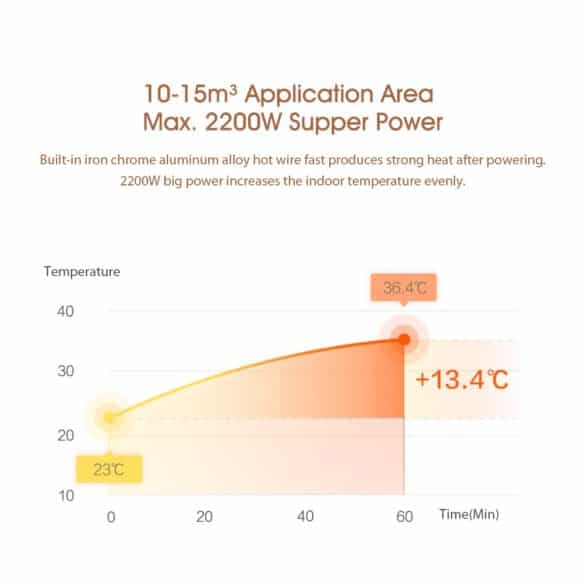 Η νέα ηλεκτρική και έξυπνη θερμάστρα Smartmi Home Electric Heater 1S DNQ04ZM διαθέτει ρυθμιζόμενη μέγιστη ισχύ από 900W – 1300W και έως στα 2200W, γρήγορη ταχύτητα θέρμανσης χάρη στη φυσική μετατροπή ενέργειας, προσφέρει σταθερή θερμοκρασία και διαθέτει ειδικά θερμαντικά φύλλα αλουμινίου.