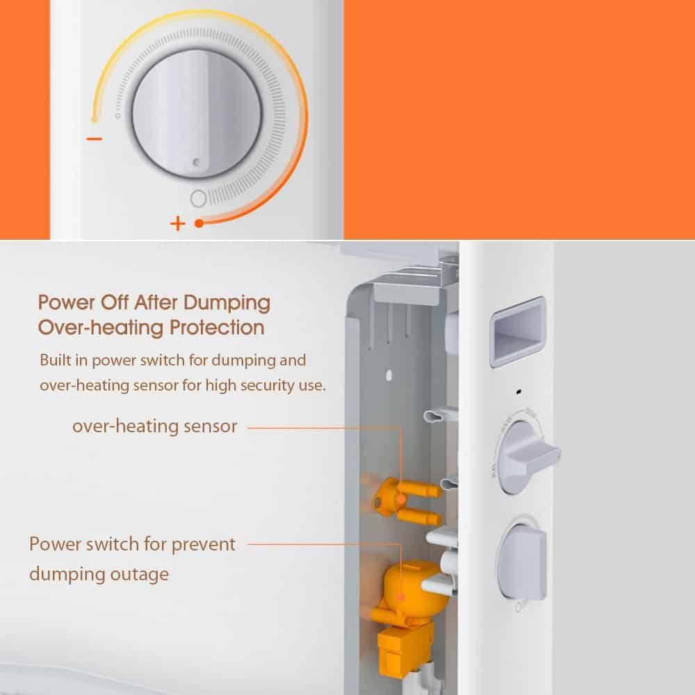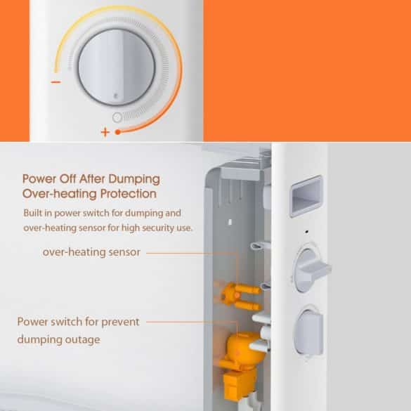 - Dumping power off, overheating protection, double guarantee for more peace of mind. Built-in dumping power-off switch and overheating protection sensor, the heater will automatically cut off the power supply when the body tilts more than 45° or the inner cavity temperature exceeds 85°C.