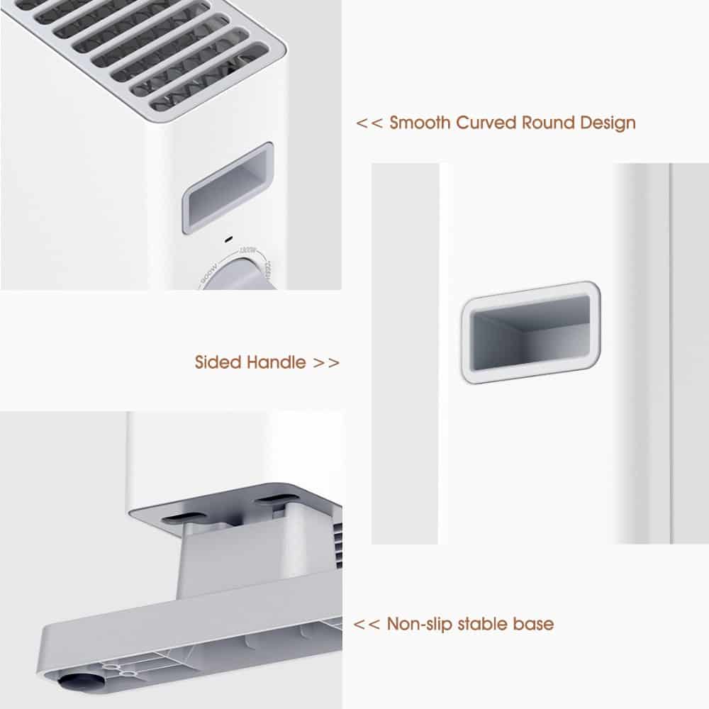Είναι συμπαγής σε μέγεθος με διαστάσεις στα 69,4 * 44,8 * 20,2 εκατοστά, χωρίς έντονο φωτισμό, αθόρυβους διακόπτες, αυτόματη ενεργοποίηση και απενεργοποίηση, ρυθμιστικό ελέγχου θερμοκρασίας και διπλή προστασία για τον πιο ασφαλή έξυπνο έλεγχο της θερμοκρασίας ώστε αυτή να παραμένει στα σταθερή στον χώρο που την χρησιμοποιείτε.
