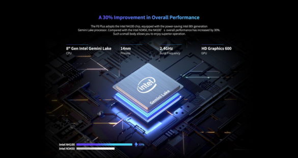 Με τη βοήθεια του επεξεργαστή Intel Gemini Lake N4100 , σας προσφέρει ομαλή λειτουργία και σταθερή εμπειρία multitasking. Είναι σχεδιασμένο με έξοδο Micro HDMI , και σας επιτρέπει να το συνδέετε με άλλες οθόνες, την τηλεόραση ή προβολείς, και μπορεί να γίνει το ιδανικό μέσο για τη δημιουργία του προσωπικού σας Home Cinema.