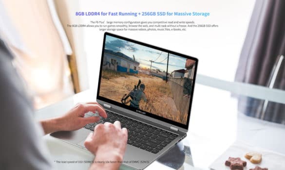 To Teclast F6 Plus δεν είναι ένα απλό Laptop καθώς μπορεί η οθόνη του να περιστραφεί κατά 360º, και να μετατραπεί σε έξι ευέλικτους τρόπους λειτουργίας, συμπεριλαμβανομένων των λειτουργιών tablet, notebook, stand, tent, κτλ.