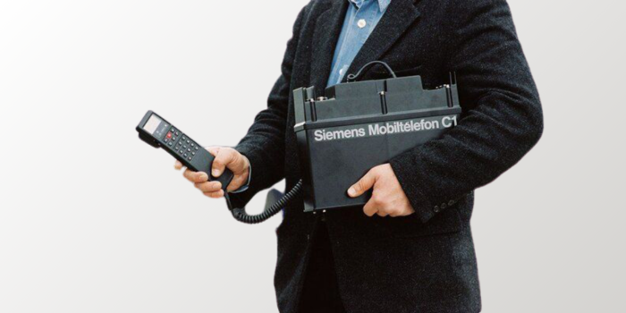 Το πρώτο κινητό τηλέφωνο της Siemens ήταν το Mobiltelefon C1, το οποίο είχε τη μορφή βαλίτσας. Ναι, σωστά διάβασες – αυτή η συσκευή ήταν στην πραγματικότητα μια βαλίτσα, αλλά μετά από αυτό, ακολούθησαν μερικά πιο συμπαγή τηλέφωνα.