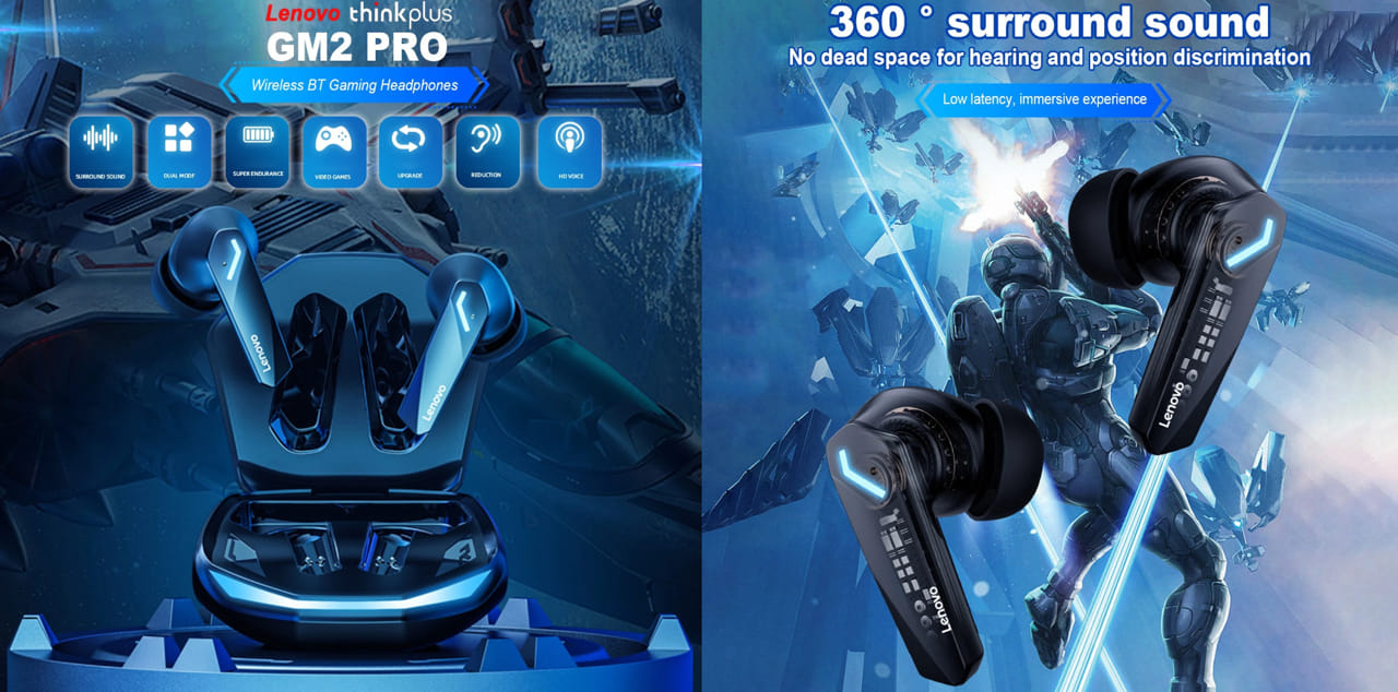 Τα ακουστικά Lenovo thinkplus GM2 Pro BT σας προσφέρουν ήχο surround 360 °, χαμηλή καθυστέρηση, και ισχυρό ΒΤ 5.3 σήμα χωρίς κενά σημεία, ώστε να έχετε μια καθηλωτική εμπειρία στον ήχο.