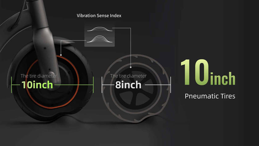 Τα πνευματικά ελαστικά 10 ιντσών παρουσιάζουν καλύτερη απόδοση στο κράτημα στο δρόμο και αντοχή στις λακούβες, προσαρμόζονται εύκολα σε διάφορες οδικές συνθήκες με ομαλή και άνετη εμπειρία οδήγησης.