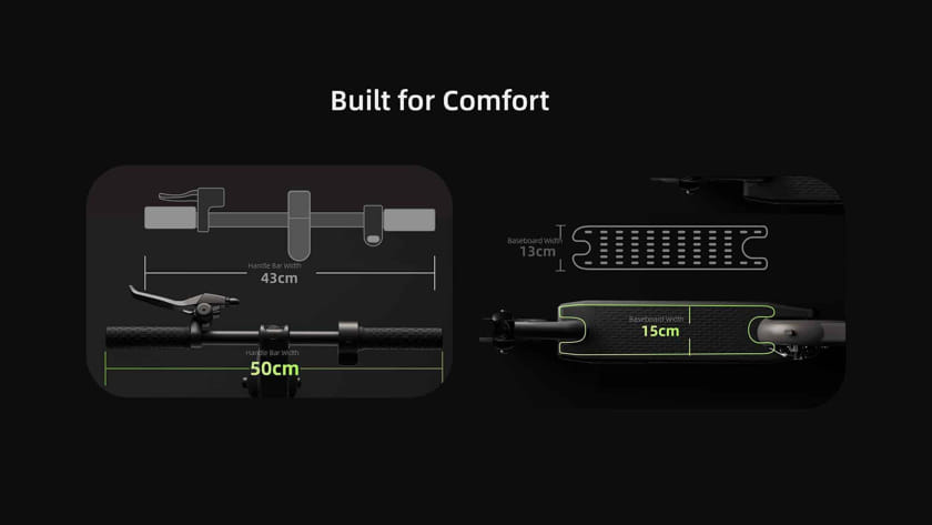 Το πλαίσιο από κράμα αλουμινίου υψηλής αντοχής 6061 παρέχει ισχυρή φέρουσα ικανότητα που φτάνει έως και το 100 κιλά, και είναι πιο ανθεκτικό και σταθερό για οδήγηση από τους χρήστες.