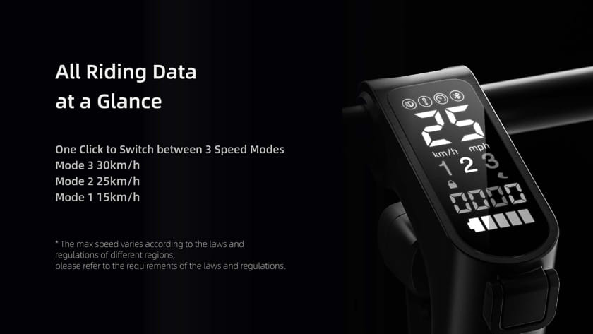 Διαθέτει ενσωματωμένο ταμπλό LED, ώστε να εμφανίζει με σαφήνεια τα δεδομένα οδήγησης, την ταχύτητα και τη διάρκεια ζωής της μπαταρίας σε πραγματικό χρόνο κατά την οδήγηση.