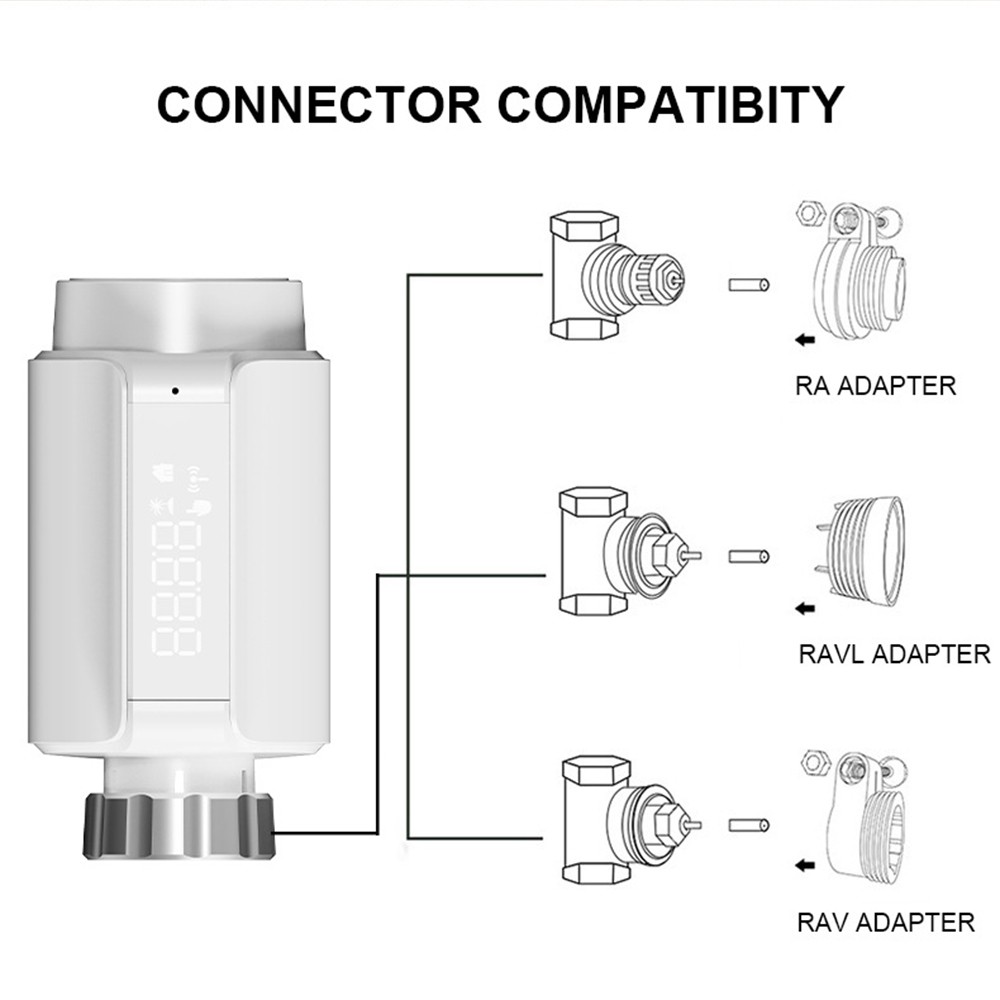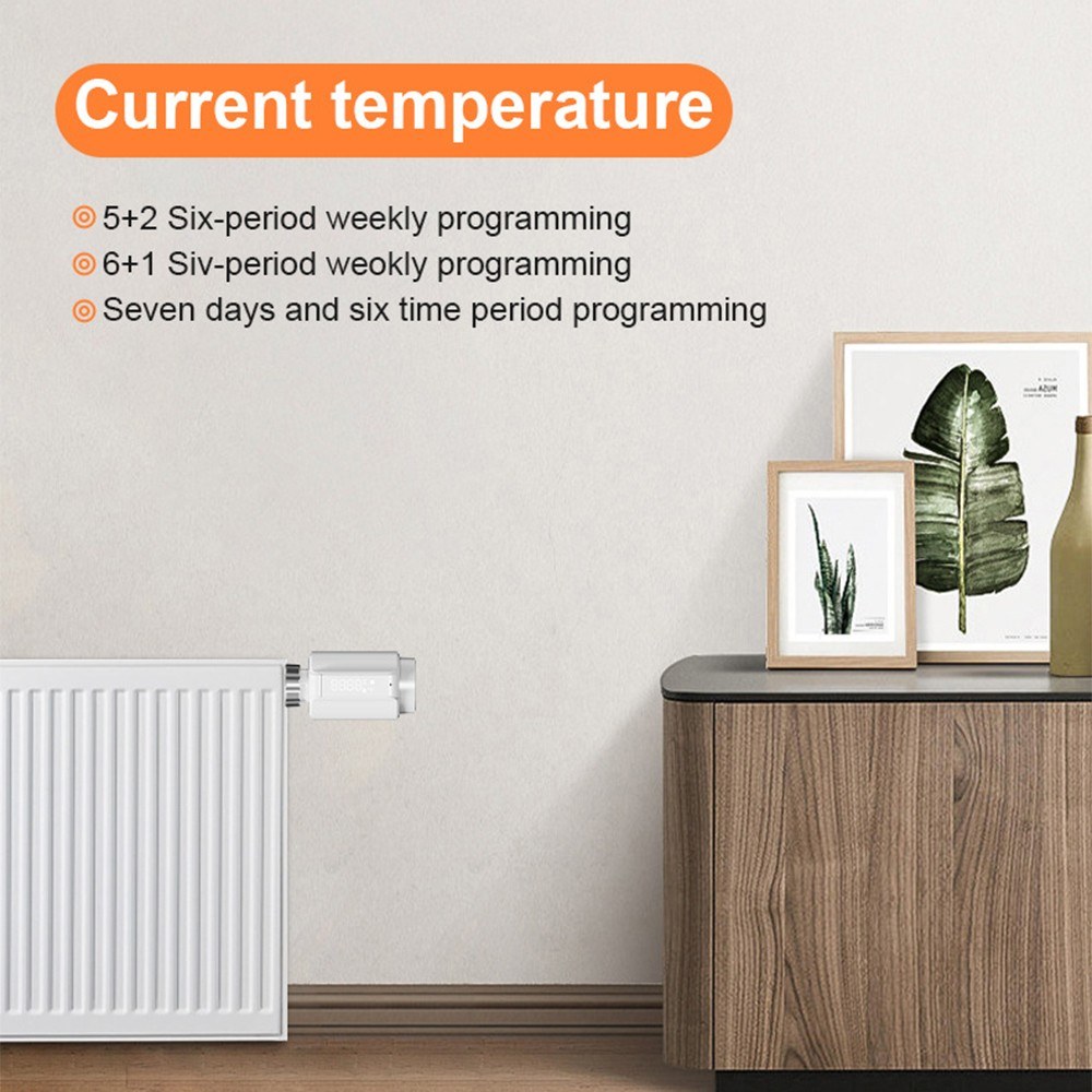 Αυτό το προϊόν είναι ένας έξυπνος θερμοστάτης για το καλοριφέρ, κατάλληλος για εξοπλισμό οικιακής θέρμανσης. Η θερμοστατική βαλβίδα καλοριφέρ (TRV) είναι μια αυτορυθμιζόμενη βαλβίδα τοποθετημένη στο καλοριφέρ του συστήματος θέρμανσης ζεστού νερού για τον έλεγχο της θερμοκρασίας ενός δωματίου αλλάζοντας τη ροή ζεστού νερού στο καλοριφέρ.