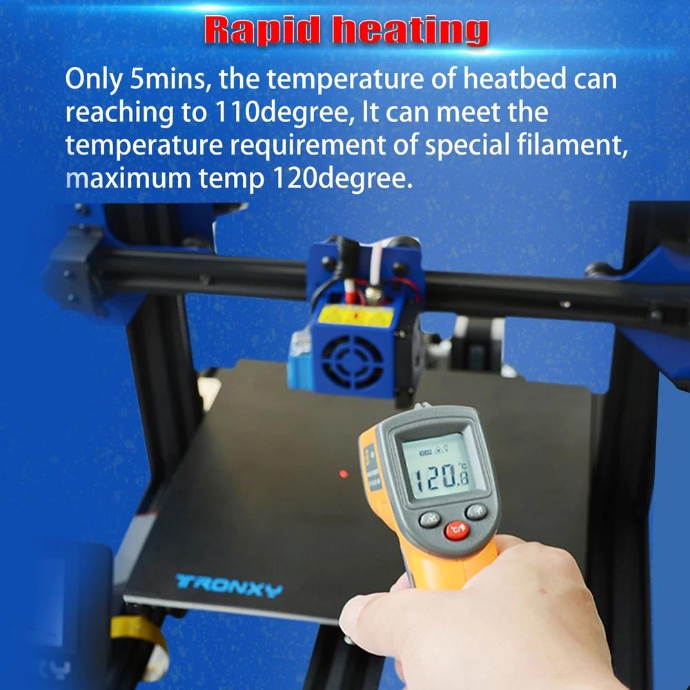 • The hotbed heats up rapidly, reaching 110°C within 5 minutes. The hotbed is covered with durable black stickers, which is easy to disassemble the model.