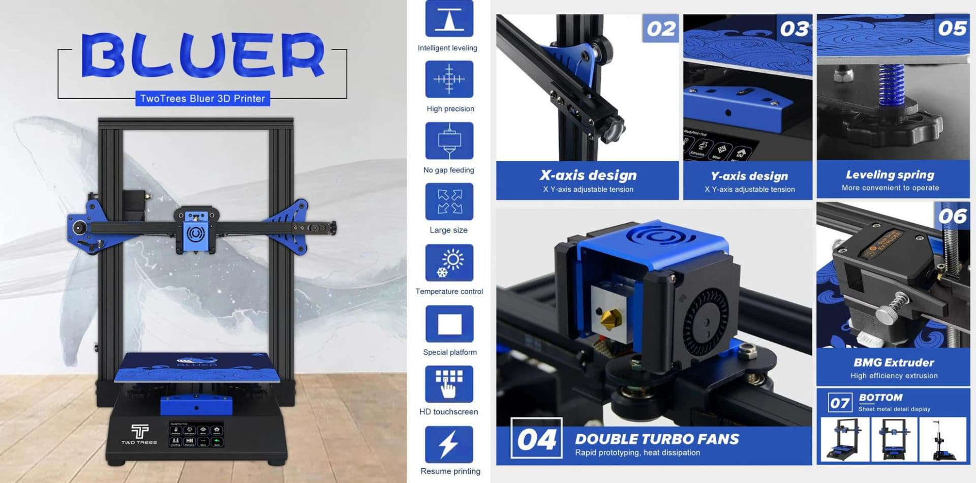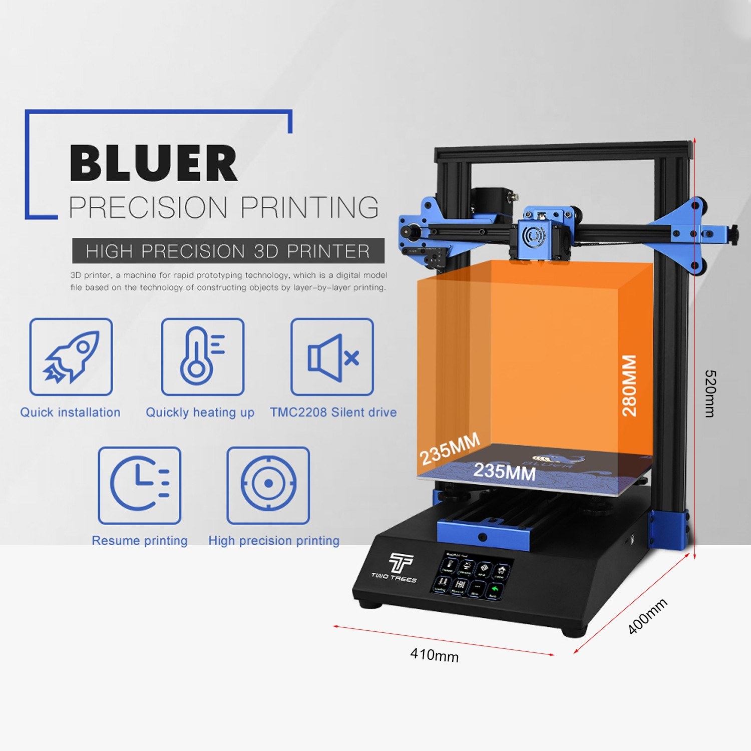 - Ο 3D εκτυπωτής TWO TREES BLUER έχει σχεδιασμό δομής από χάλυβα, έχει υψηλή σταθερότητα, ενώ ταυτόχρονα η αθόρυβη μονάδα TMC2208 256, επιτυγχάνει εκτύπωση υψηλής ακρίβειας και μειώνει το θόρυβο.