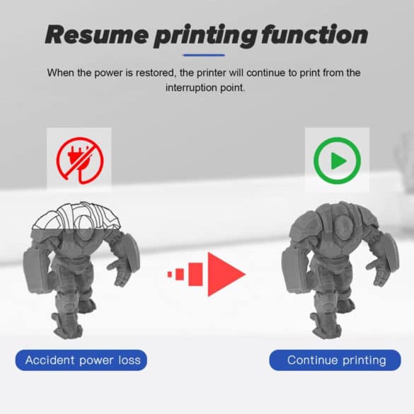 - Διαθέτει την λειτουργία συνέχισης της εκτύπωσης, και όταν αποκατασταθεί η τροφοδοσία, ο εκτυπωτής θα συνεχίσει την εκτύπωση από το σημείο στο οποίο διακόπηκε.