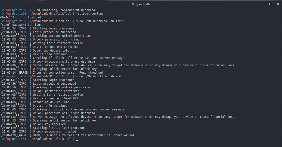Ο οδηγός περιγράφει τη διαδικασία ξεκλειδώματος του bootloader xiaomi συσκευής σε linux, και είναι μία δημιουργία της συντονίστριας στο φόρουμ μας fog (Ειρήνη) !