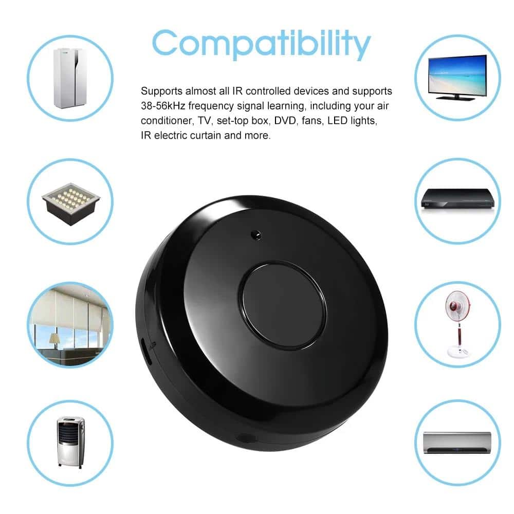 Υποστηρίζει σχεδόν όλες τις συσκευές υπερύθρων αλλά και την εκμάθηση σήματος συχνότητας 38-56kHz, συμπεριλαμβανομένου του κλιματιστικού σας, της τηλεόρασης, του αποκωδικοποιητή, του DVD, των ανεμιστήρων, των φώτων LED, της ηλεκτρικής κουρτίνας IR και άλλων. Διαθέτει μία μεγάλη βάση δεδομένων υπερύθρων.