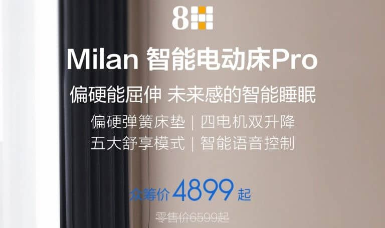 Τον Δεκέμβριο του 2019, η Xiaomi κυκλοφόρησε το έξυπνο ηλεκτρικό κρεβάτι 8H Milan μέσω της πλατφόρμας crowdfunding της εταιρείας στην τιμή των 1999 γιουάν (300 $ / 253 €), το οποίο υποστηρίζει 5 διαφορετικές θέσεις του στρώματος, έξυπνο φωνητικό έλεγχο και άλλες λειτουργίες.