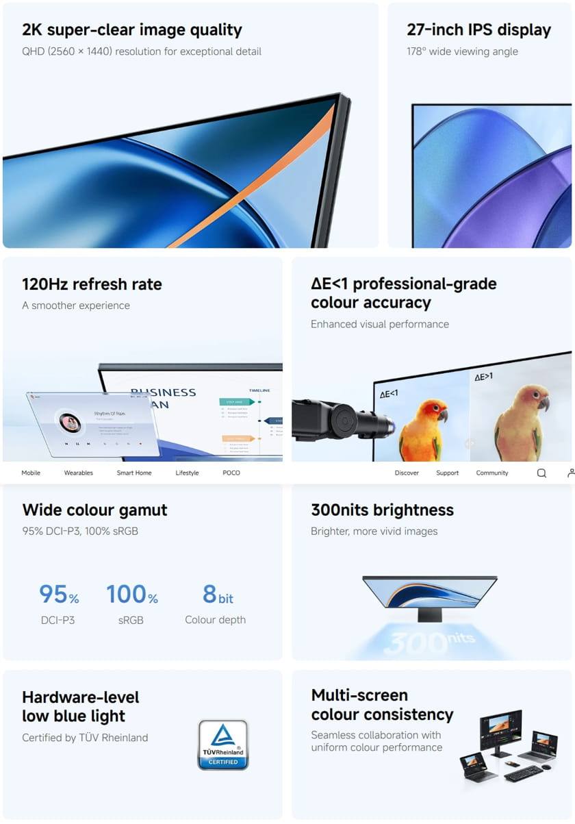 Μία από τις μεγαλύτερες αναβαθμίσεις είναι η χρωματική ακρίβεια ΔE<1. Η Xiaomi βαθμονομεί κάθε μονάδα πριν φύγει από το εργοστάσιο. Το πάνελ καλύπτει το 95% της χρωματικής γκάμας στο DCI-P3 και το 100% του sRGB. Αυτό δίνει πιο ακριβή και σταθερά χρώματα για τον σχεδιασμό, την επεξεργασία φωτογραφιών και των βίντεο, καθιστώντας το ιδανικό και για χρήση στο γραφείο.