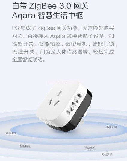 Το μοντέλο P3 ενσωματώνει και την λειτουργία πύλης (Gateway) με το πρωτόκολλο επικοινωνίας ZigBee, 3.0, το οποίο εξαλείφει την ανάγκη της χρήσης κάποιου πρόσθετου διανομέα (HUB). Αυτό επιτρέπει την άμεση πρόσβαση σε διάφορες άλλες έξυπνες συσκευές της Aqara, όπως διακόπτες τοίχου, έξυπνες πρίζες, έξυπνες κλειδαριές πορτών, ασύρματους διακόπτες, αισθητήρες θυρών και παραθύρων και πολλές άλλες.