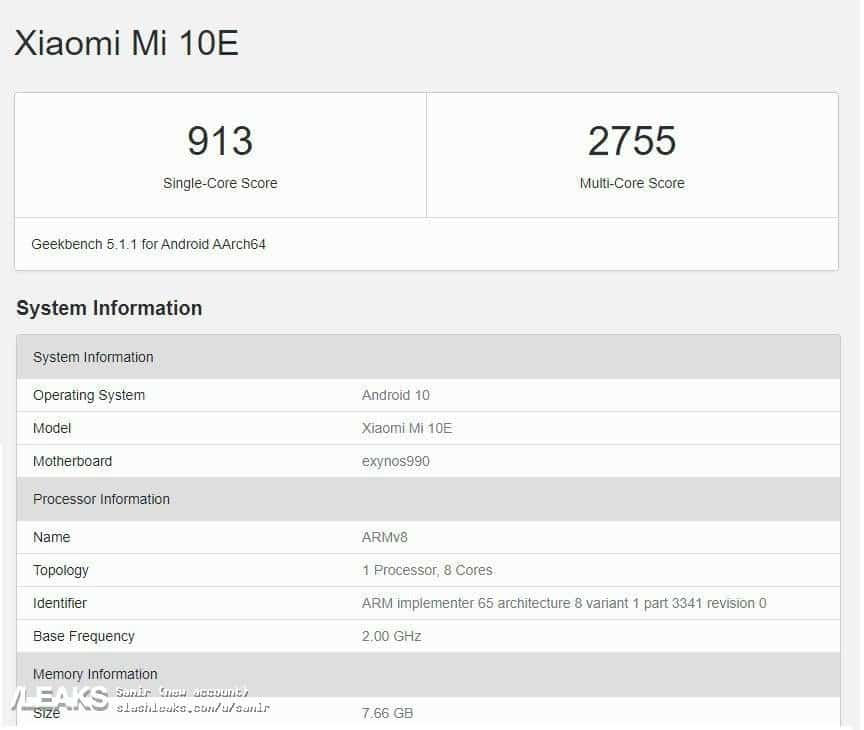 Xiaomi Mi 10E : Έκανε την εμφάνισή του στο GeekBench με Exynos 990 SoC της Samsung !!!