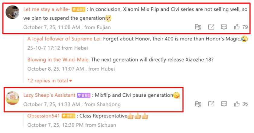 Αν και ο tipster δεν ανέφερε κάποια συγκεκριμένα ονόματα μοντέλων, εικάζεται ότι οι εν λόγω συσκευές θα μπορούσαν να είναι το Xiaomi Mix Flip 3 και το Xiaomi Civi 6, τα οποία αρχικά αναμενόταν να κάνουν το ντεμπούτο τους κατά το 2026. Το Mix Flip 2, το πρώτο Flip αναδιπλούμενο Smartphone της Xiaomi, φέρεται να μην είχε καλές πωλήσεις παρά τον premium σχεδιασμό και την ανταγωνιστική του τιμή, ενώ το Civi 5 δυσκολεύτηκε επίσης να κερδίσει ένα σημαντικό μερίδιο αγοράς στη μεσαία κατηγορία.