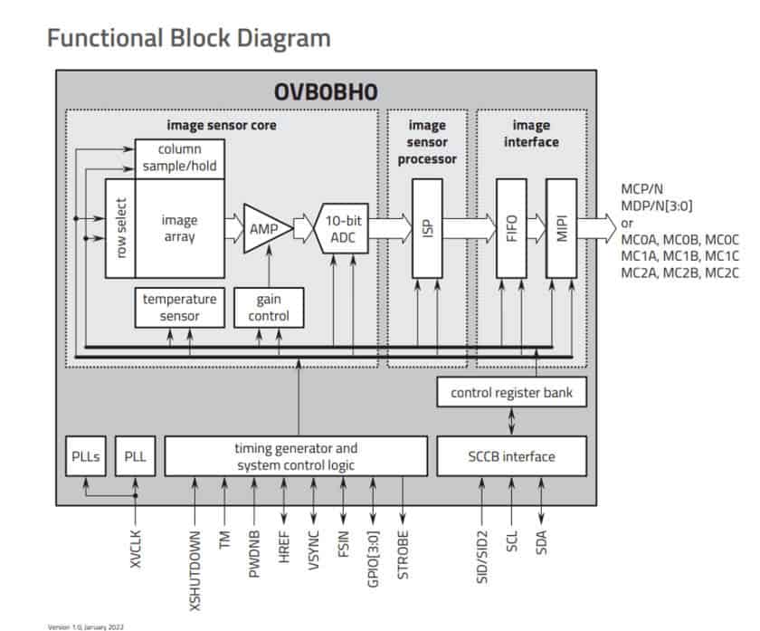 - Power Requirement: Active – 1250 mW (50MP @ 24 fps), XSHUTDOWN – <10 µA