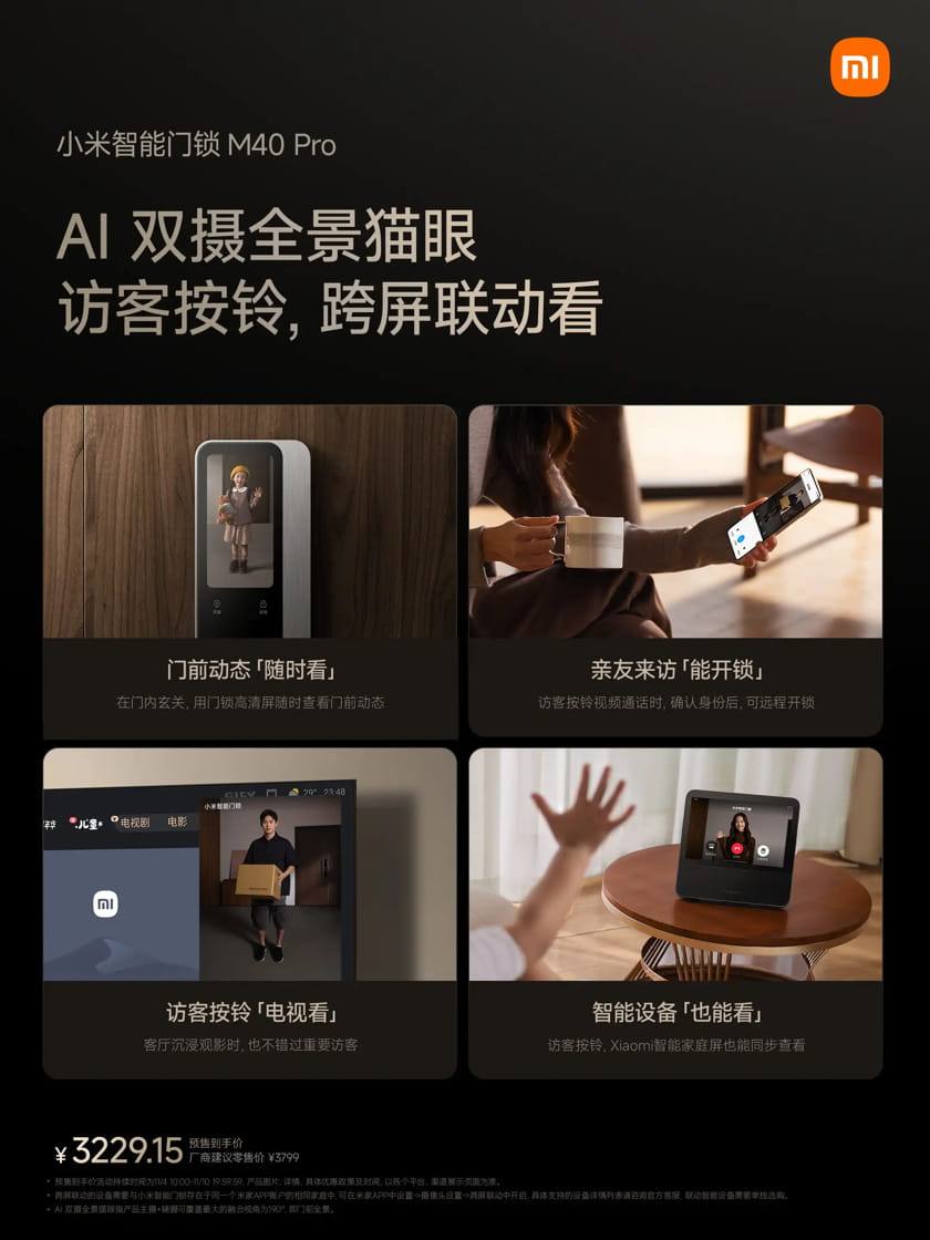 Η Xiaomi αποκάλυψε στην Κίνα τη νέα Smart Door Lock M40 Pro (έξυπνη κλειδαριά πόρτας), με διπλές ενσωματωμένες κάμερες και υποστήριξη στο HyperOS Connect της εταιρείας
