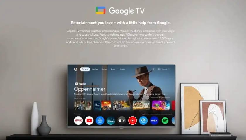 Από την πλευρά του λογισμικού, η τηλεόραση τρέχει το Google TV με ενσωματωμένο Google Assistant, για μετάδοση τύπου Chromecast και υποστήριξη στο Miracast.