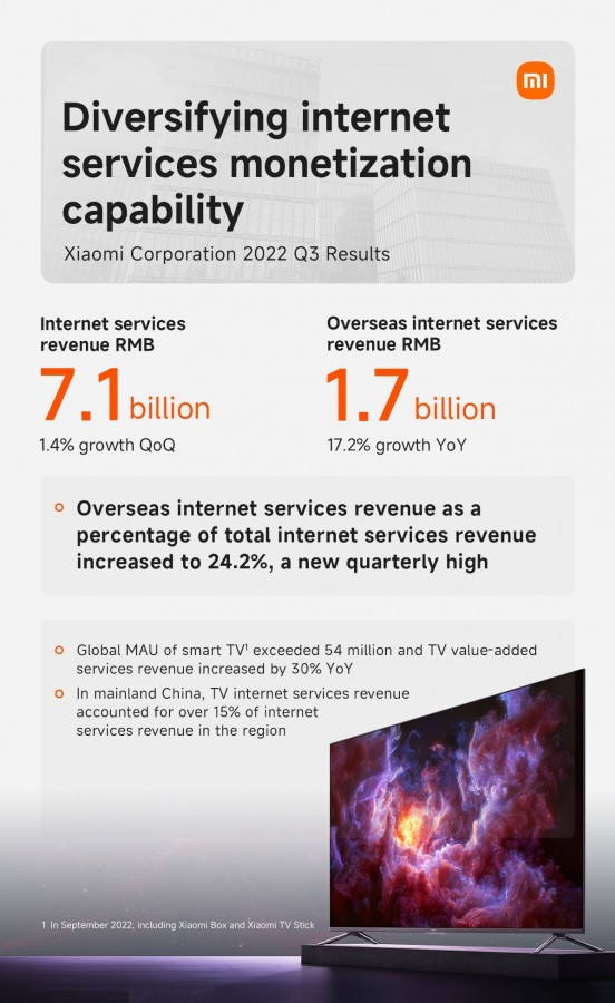 Συγκεκριμένα, τα έσοδα της Xiaomi για την περίοδο Ιουλίου – Σεπτεμβρίου 2022 ανήλθαν στα 70,5 δισεκατομμύρια CNY (~ 10 δισεκατομμύρια δολάρια), εκ των οποίων το 50,5% προήλθε από αγορές του εξωτερικού.