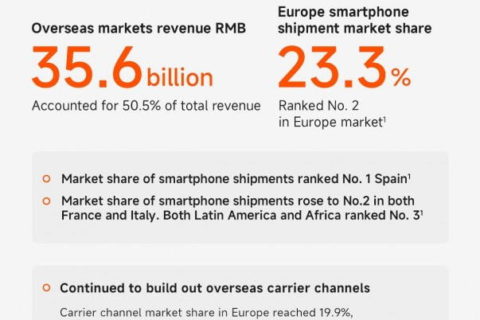 Η Xiaomi έφτασε στη 2η θέση στην ευρωπαϊκή αγορά, στην 1η θέση στην Ισπανία και στη 2η στην Ιταλία και τη Γαλλία, ενώ βρίσκεται στην 3η θέση στη Λατινική Αμερική και την Αφρική.