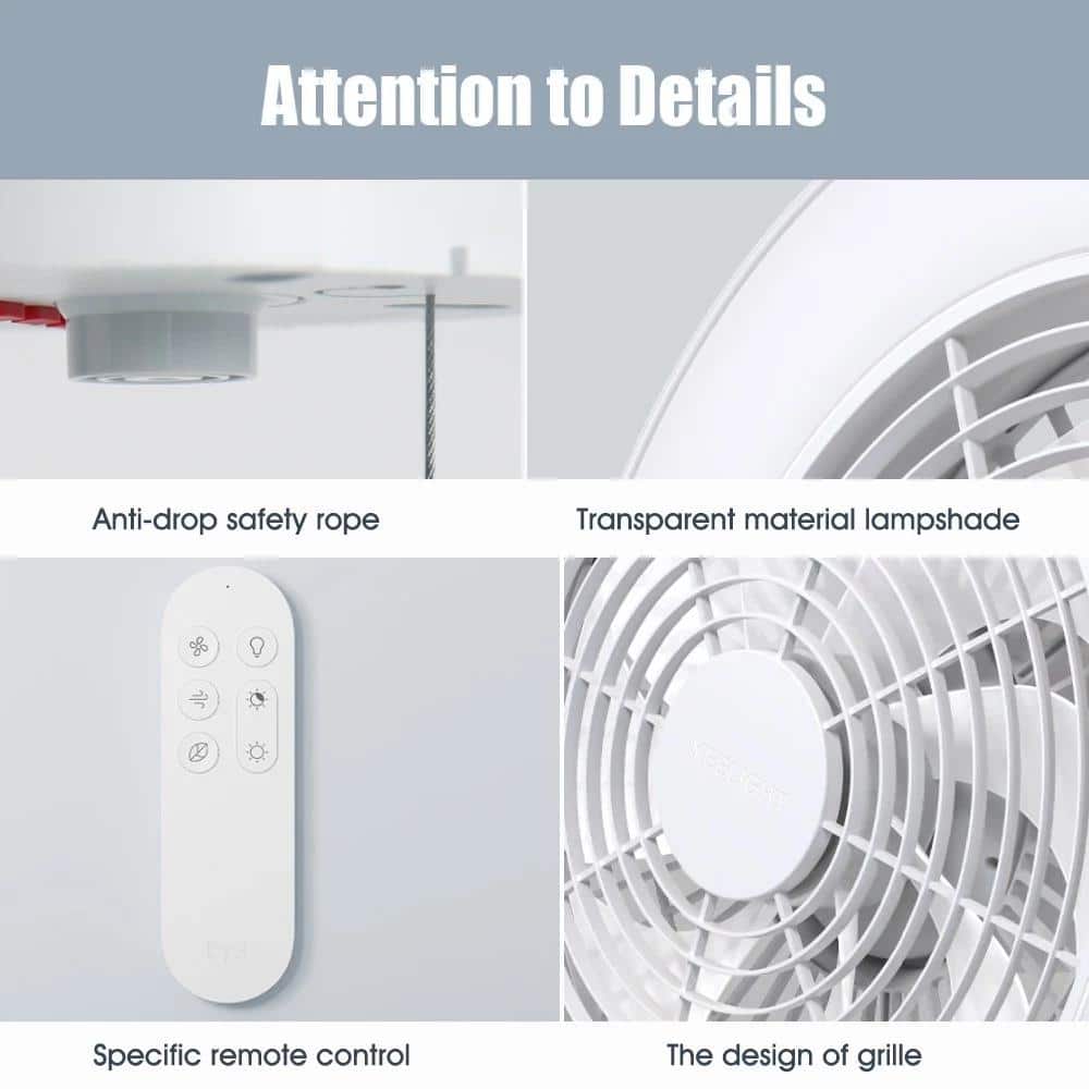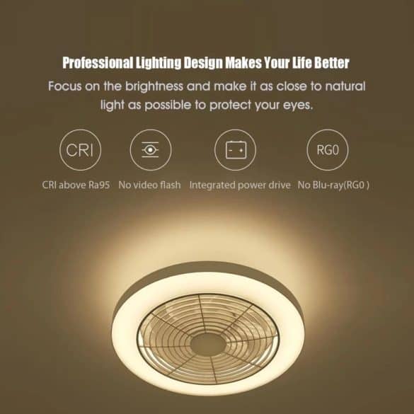 Αυτή η συσκευή είναι ουσιαστικά 3 σε 1 συσκευές, αφού καταφέρνει να συνδυάζει την λειτουργεία ως φωτιστικό – ανεμιστήρας αλλά και ως μία έξυπνη (Smart) συσκευή, που μπορείτε να την διαχειριστείτε απευθείας από το Smartphone σας ή από το τηλεχειριστήριο που συμπεριλαμβάνεται στην συσκευασία.