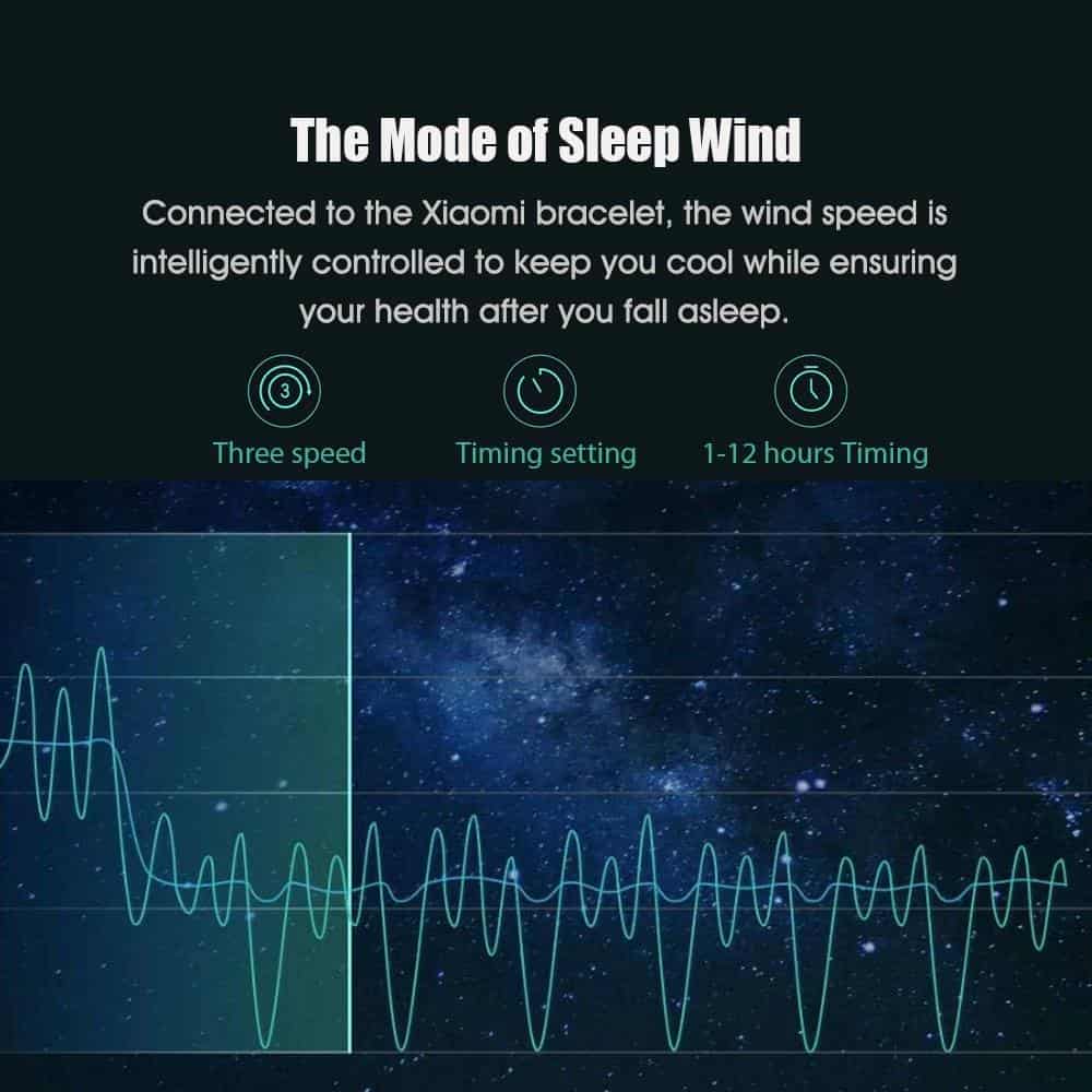 Μέσα από την εφαρμογή στο Smartphone ή από το τηλεχειριστήριο θα μπορείτε να προσαρμόσετε  τις πολλαπλές ταχύτητες του αέρα, τις λειτουργίες φωτισμού και την ένταση της φωτεινότητας. Μάλιστα, ο ανεμιστήρας διαθέτει και την λειτουργία του ανέμου ύπνου, και μπορεί να ενεργοποιηθεί αφού συνδεθεί με το Mi Band.